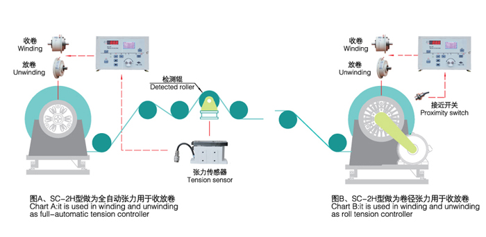 SC-2H型自動張力控制儀采用液晶顯示器,可選擇中、英文顯示,界面友好易用,可輸出0-24V/4A直接驅動磁粉離合器、磁粉制動器;也可輸出0-5V,0-10V信號,控制變頻器、伺服電機或其它執行機構,對卷繞系統進行高精度的張力控制。可廣泛應用于造紙、印刷、包裝、紡織、印染等行業。