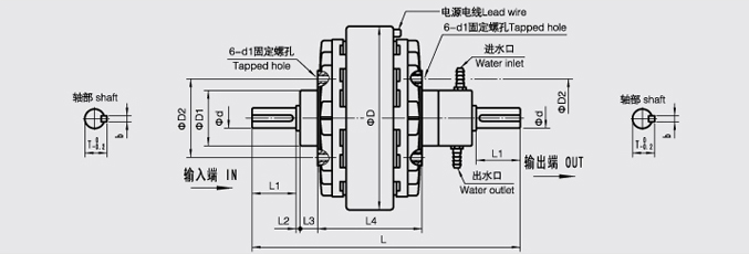 FL/Y型( 軸輸入、軸輸出、止口支撐、水冷卻)磁粉離合器 由于FL/Y型磁粉離合器具有的一些獨有的特性,現已被廣泛應用于造紙、印刷、塑料、橡膠、紡織、印染、電線電纜、冶金以及其他相關卷取加工行業中收卷和放卷張力的控制。 FL/Y型磁粉離合器是由主動轉子、從動轉子、含激磁線圈的磁軛組成, 激磁線圈無電流通過時,工作腔中的磁粉呈松散狀態。三部分相對同心裝配。 在主動轉子所產生的離心力的作用下,FL/Y型磁粉離合器形成了一個可以相對轉動的整體,在主動轉子和從動轉子之間的環形空隙內填有高導磁性的合金磁粉。 當磁粉被均勻地甩在主動轉子的內壁上,主、從動轉子之間特定的相互作用,使得FL/Y磁粉離合器處于分離狀態,沒有轉矩的傳遞。