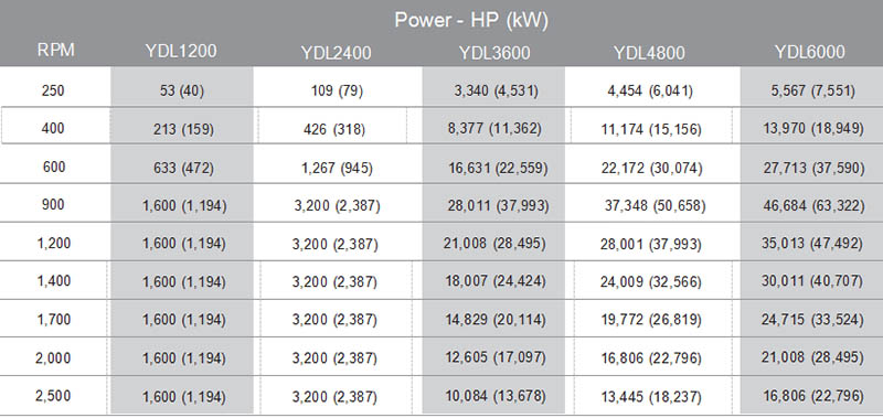 YDL型水力測(cè)功機(jī)功率曲線