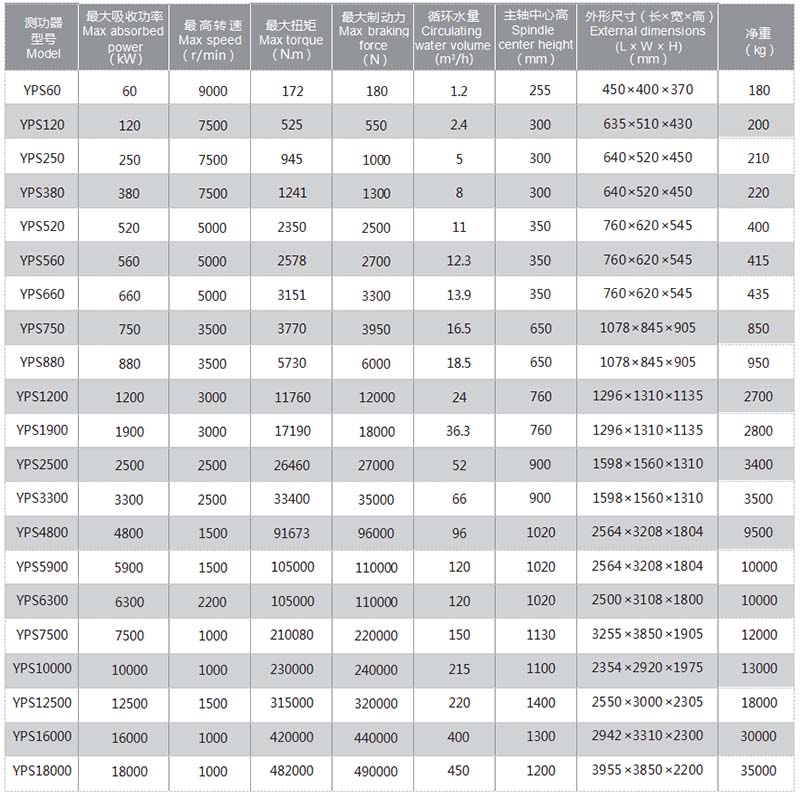 YP系列水力測功機共有12個規(guī)格,均采用電動排水蝶閥控制。即通過改變蝶閥的開度來改變吸收功率的大小。制動功率范圍從20KW到5900KW,品種齊全,國內(nèi)外用戶根據(jù)自己發(fā)動機功率范圍選擇合適的機型選購。